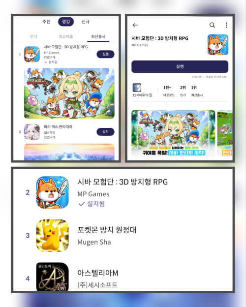 신규 다운로드 1위는 ‘얼마나 많은 이용자들이 출시 직후 게임을 설치했는가’를 보여주는 지표이므로, 시바 모험단이 시장에 강한 인상을 남겼음을 뜻한다.